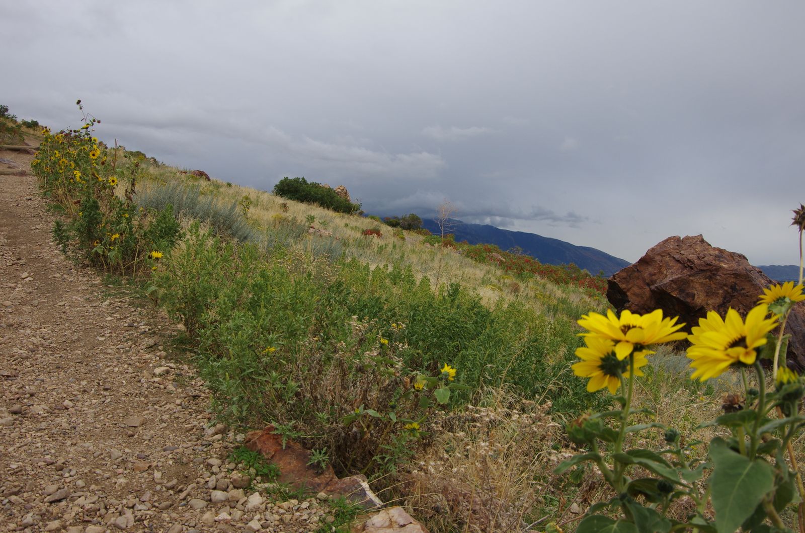 Jedenfalls fuhren wir anschließend gleich zum Fuße des Mount Olympus, den wir mittlerweile schon 2 Mal, immer mit Kind, in Angriff genommen hatten. Nach nur 10 Minuten Fahrt konnte es losgehen. Eine Strecke 3,5 Meilen (5,5 km) und 1300 Höhenmeter. Das Wetter war nicht das schönste, aber immerhin keine Hitze und kein Regen. Der Einstieg ist gleich sehr steil, dann wird es besser, und das letzte Drittel ist dann wieder sehr beschwerlich - auf keinen Fall mit Kind zu machen, da man teilweise auf allen Vieren kraxeln muss. Das letzte Stück ist nur mit Seil zu machen. Da, wo ich in der Wand stehe (nicht liege!) war Endpunkt unserer Wanderung. Mittlerweile hatte es auch zu schneien begonnen und ich war froh, dass ich mein Paar Ersatzsocken zu Handschuhen umfunktionieren konnte. Thomas hatte wohl auch nicht damit gerechnet, dass es soooo kalt werden würde. Ich hatte ihn noch gefragt, ob er nicht lieber eine lange Hose anziehen wolle. Auch bergab gestaltete sich schwierig, denn es war, wie gesagt, steil und mittlerweile auch rutschig. Wenn was passiert: Dort oben hat man keinen Handyempfang. Es war jedenfalls sehr schön, mit vielen schönen Ausblicken ins Tal und Einblicken in die hiesige Natur.