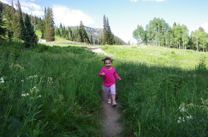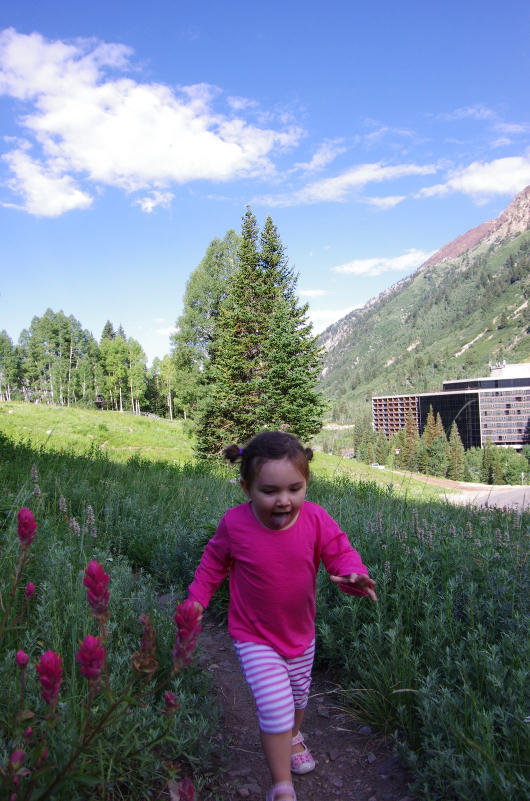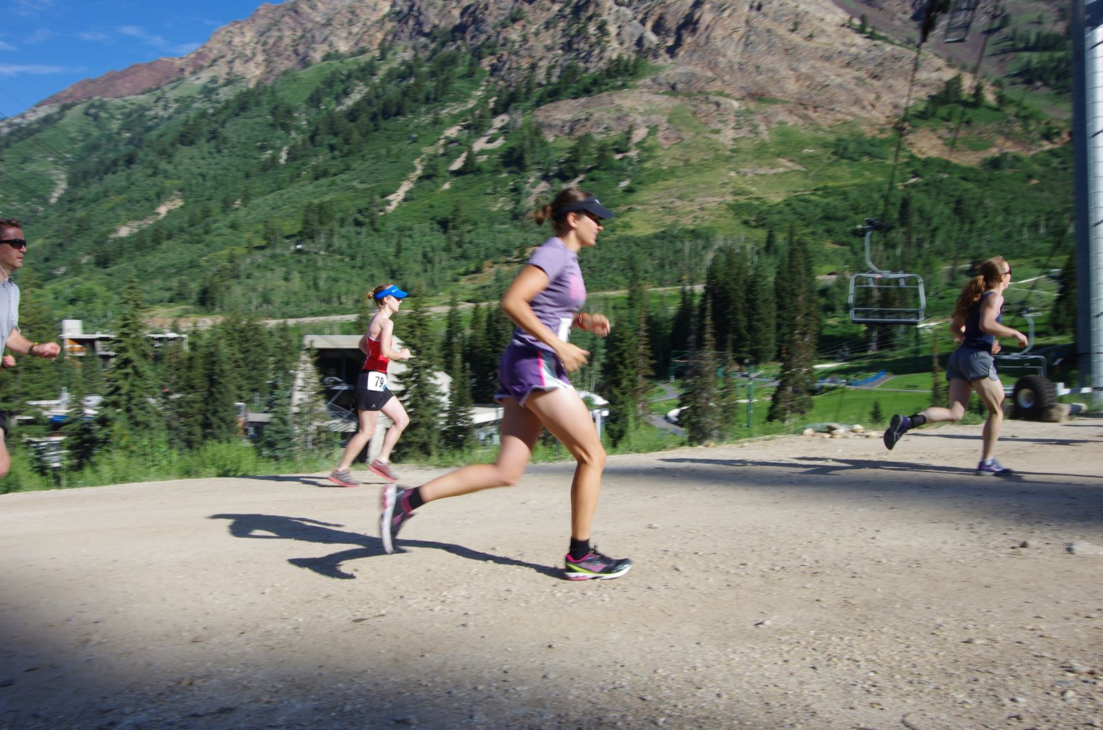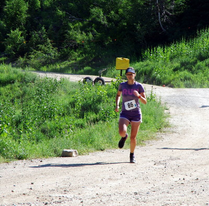 Nachdem ich zwei Wochen Laufpause wegen einer Entzündung an der Ferse machen musste, musste ich zwar meinen Traum vom Marathon für dieses Jahr begraben, entschied mich aber für einen bergigen 10km-Lauf namens "Hidden Peak Hustle" für Samstag Morgen. 9 Uhr war Start im Ski- und Wandergebiet Snowbird. Die Strecke barg schätzungsweise 200-300 Höhenmeter und ging bei etwa 2500 Metern Höhe los. Ausgetragen wurde er von Black Diamond, dem Outdoor-Ausrüster, DynaFit, die dort einen Trail-Schuh-Stand hatten und Trader Joe's, dem Supermarkt, den wir uns meistens nicht leisten können. Dementsprechend gut war die Verpflegung an Start und Ziel und Karla steckte ordentlich Riegel und Bananen ein, während wir so taten, als würden wir es nicht sehen. Wir mussten nur aufpassen, dass sie sie auch abgab und nicht gleich aufaß.