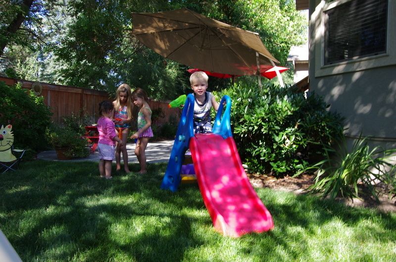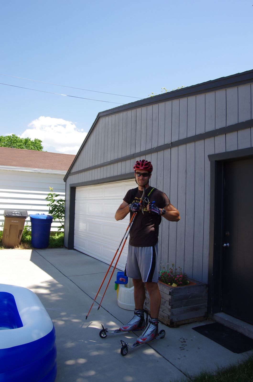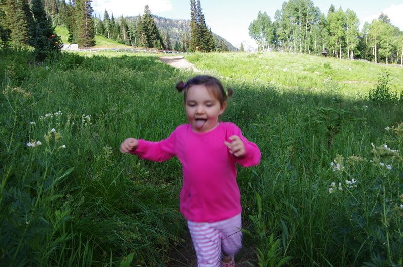 Dann konnten wir endlich gehen. Zuhause war erst einmal die Luft raus. Zum Einen, weil es inzwischen elendig heiß geworden war. Zum Anderen, weil Karla partout keinen Mittagsschlaf machen wollte, eine Stunden protestierte, dann 35 Minuten schlief und dann wieder protestierte. Und dass, obwohl sie nach der letzten Nacht den Schlaf auch bitter nötig gehabt hätte - ebenso wie wir. Um 14:30 brach Thomas dann klatschnass, um die Hitze überhaupt irgendwie ertragen zu können, auf Rollerski zu einer bergigen 2-Stunden-Einheit in den Emigration Canyon auf. Nach 10 Minuten war er bereits wieder getrocknet, und dass, obwohl keine Funktionskleidung anhatte! Währenddessen blieben Karla und ich drinnen und ich versuchte, sie mit Malen, Bücher ansehen und usw. bei Laune zu halten. Als Thomas wiederkam, sprangen wir nochmal in den Pool.