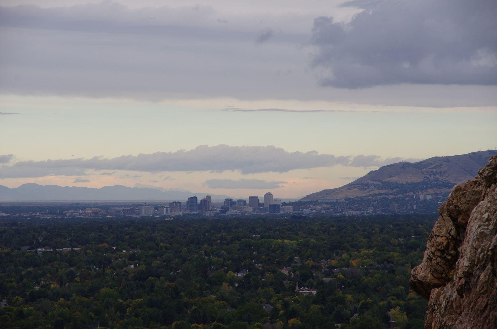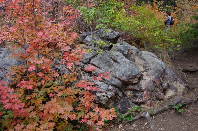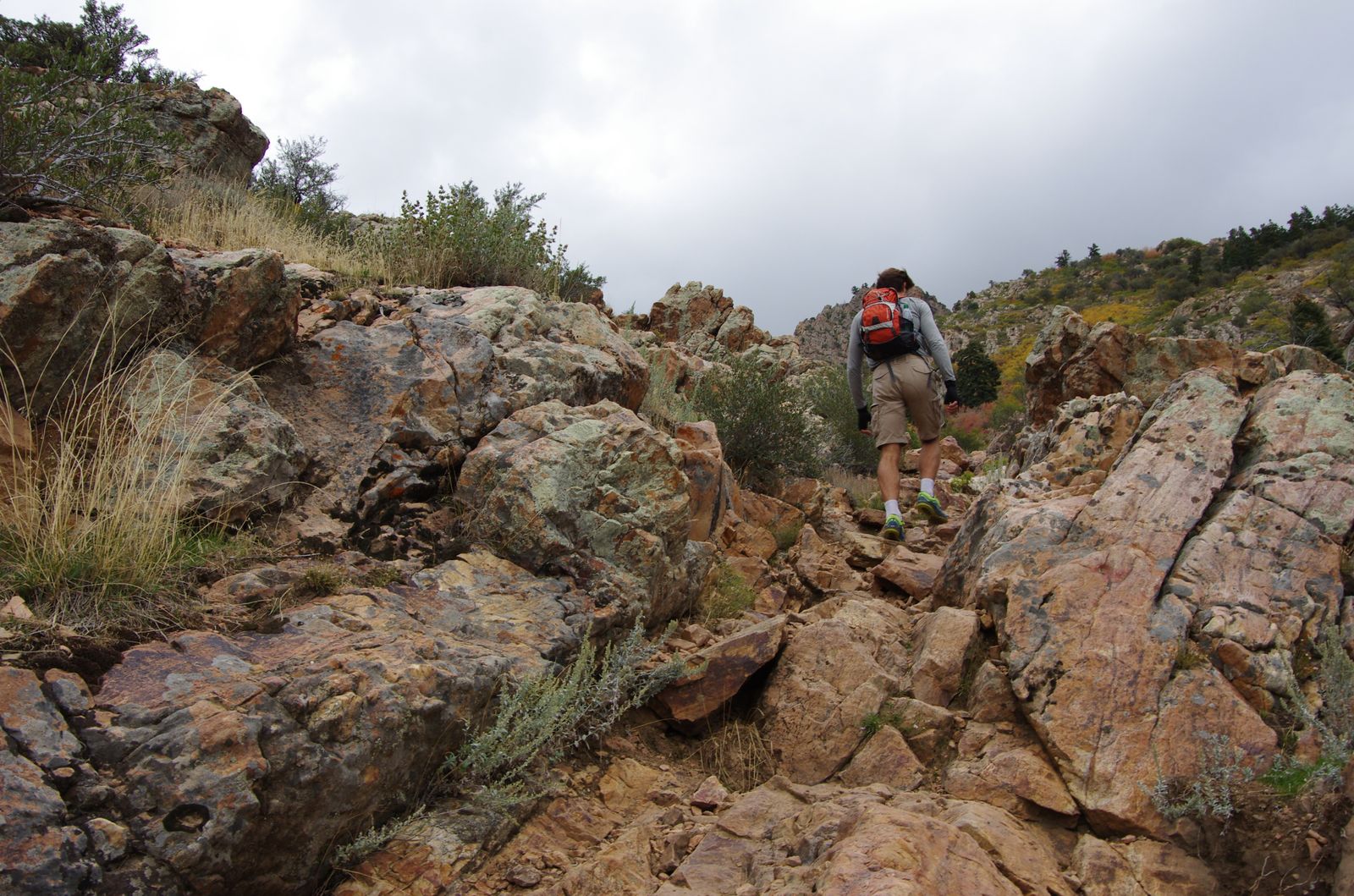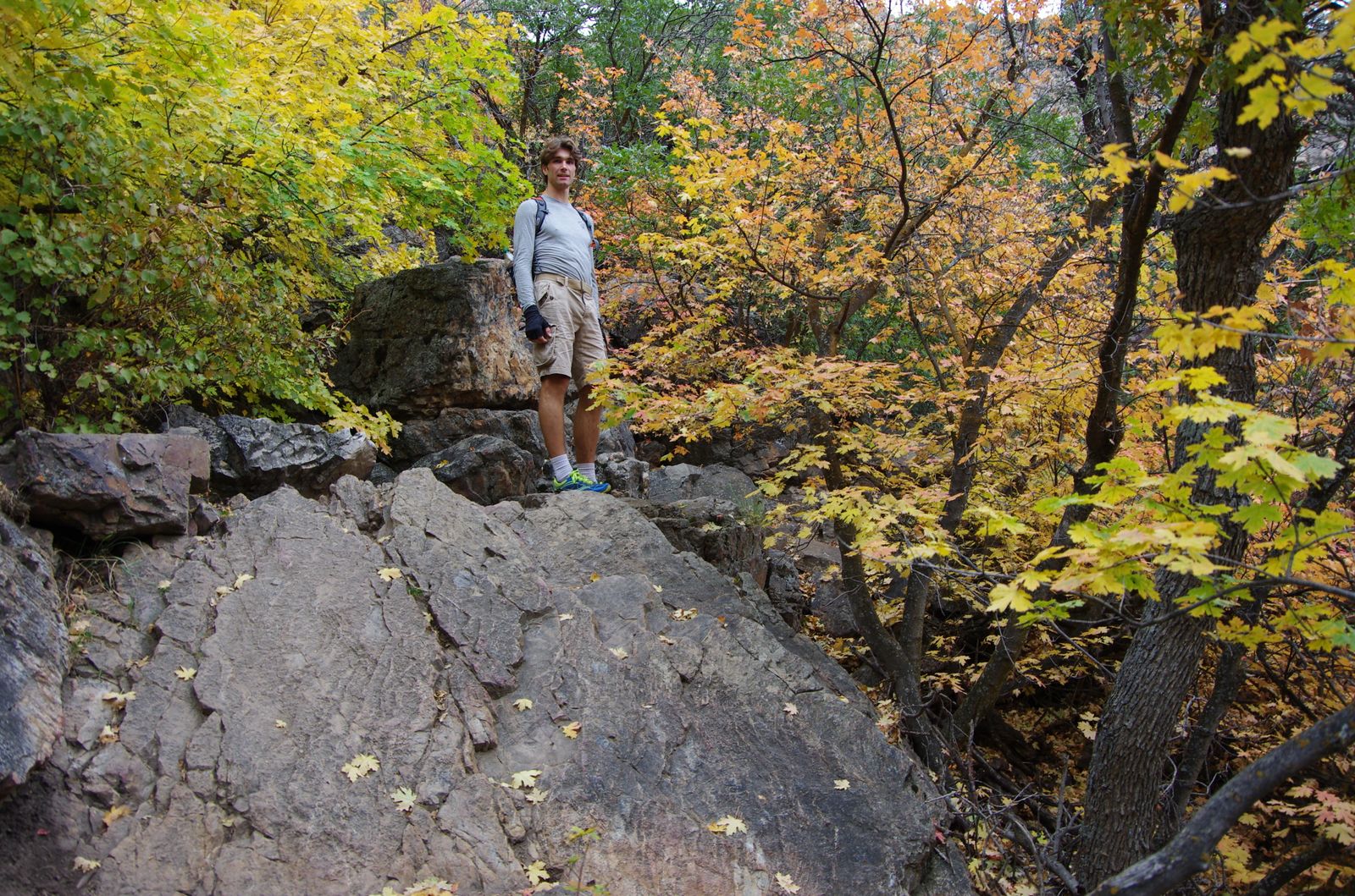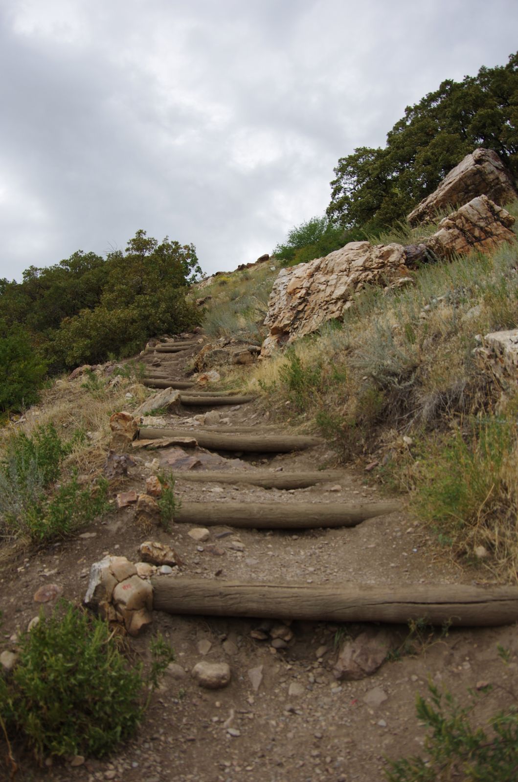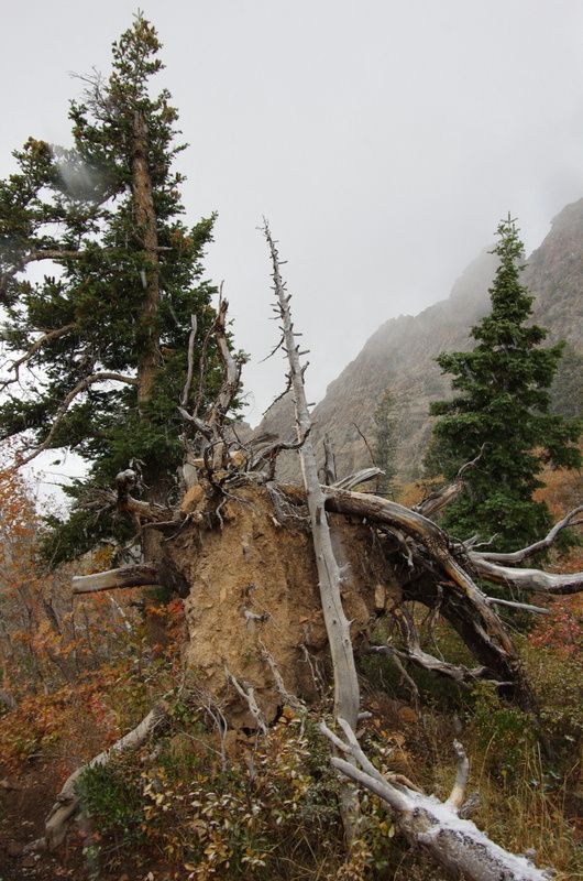 Jedenfalls fuhren wir anschließend gleich zum Fuße des Mount Olympus, den wir mittlerweile schon 2 Mal, immer mit Kind, in Angriff genommen hatten. Nach nur 10 Minuten Fahrt konnte es losgehen. Eine Strecke 3,5 Meilen (5,5 km) und 1300 Höhenmeter. Das Wetter war nicht das schönste, aber immerhin keine Hitze und kein Regen. Der Einstieg ist gleich sehr steil, dann wird es besser, und das letzte Drittel ist dann wieder sehr beschwerlich - auf keinen Fall mit Kind zu machen, da man teilweise auf allen Vieren kraxeln muss. Das letzte Stück ist nur mit Seil zu machen. Da, wo ich in der Wand stehe (nicht liege!) war Endpunkt unserer Wanderung. Mittlerweile hatte es auch zu schneien begonnen und ich war froh, dass ich mein Paar Ersatzsocken zu Handschuhen umfunktionieren konnte. Thomas hatte wohl auch nicht damit gerechnet, dass es soooo kalt werden würde. Ich hatte ihn noch gefragt, ob er nicht lieber eine lange Hose anziehen wolle. Auch bergab gestaltete sich schwierig, denn es war, wie gesagt, steil und mittlerweile auch rutschig. Wenn was passiert: Dort oben hat man keinen Handyempfang. Es war jedenfalls sehr schön, mit vielen schönen Ausblicken ins Tal und Einblicken in die hiesige Natur.